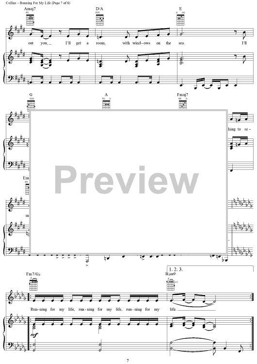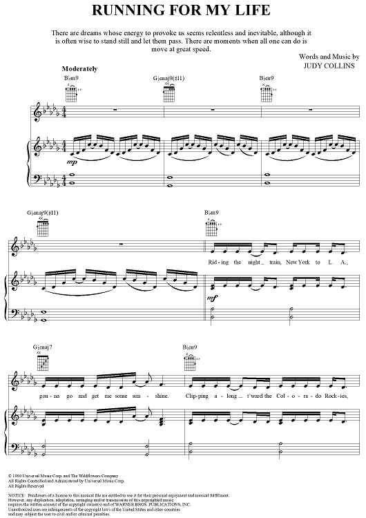 Digital Sheet Music for Running for My Life by Judy Collins scored for Piano/Vocal/Chords; id:285935
