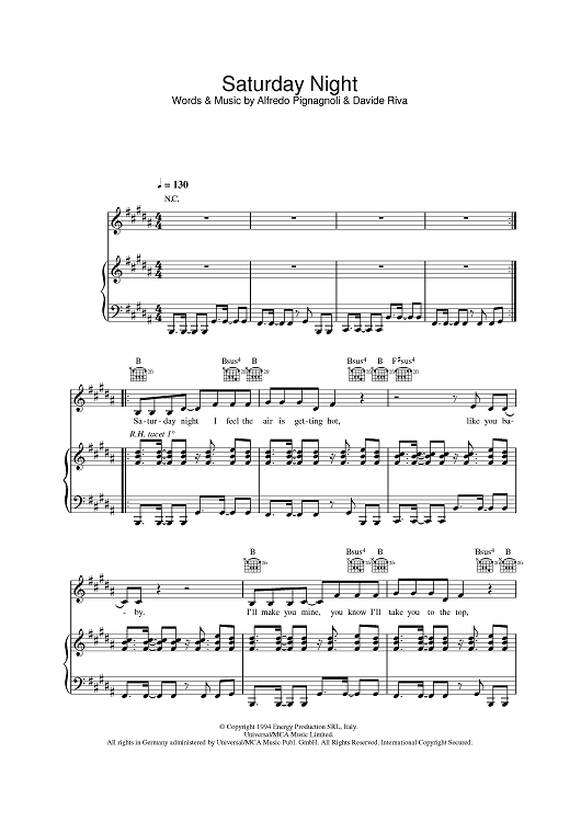 Digital Sheet Music for Saturday Night by Alfredo Pignagnoli, Davide Riva, Whigfield scored for Piano/Vocal/Chords; id:396810