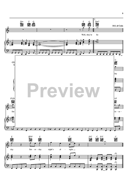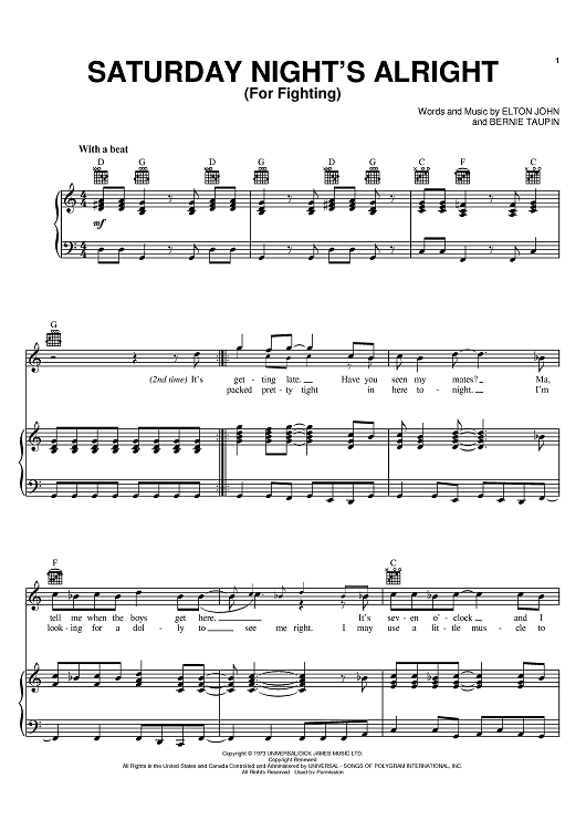 Digital Sheet Music for Saturday Night's Alright (For Fighting) by Elton John, Bernie Taupin scored for Piano/Vocal/Chords; id:383037