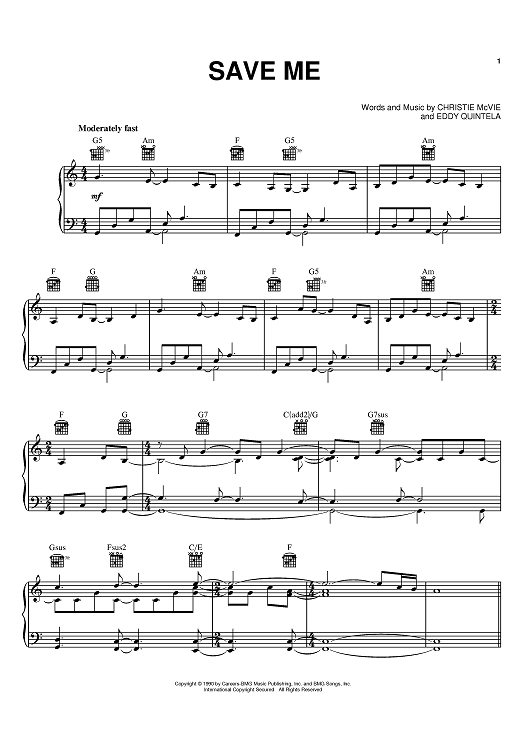 Digital Sheet Music for Save Me by Eddy Quintela, Christine McVie scored for Piano/Vocal/Chords; id:371024