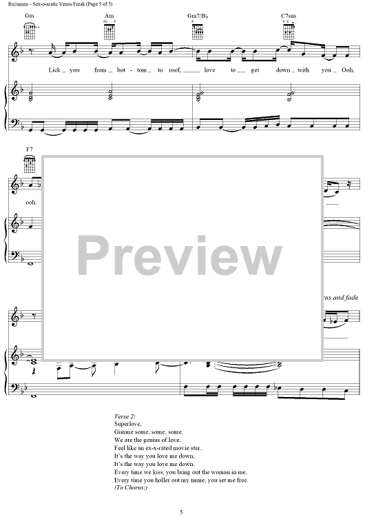 Digital Sheet Music for Sex-o-matic Venus Freak by Macy Gray, Jeremy Ruzumna, Dion Derek Murdock scored for Piano/Vocal/Chords; id:283028