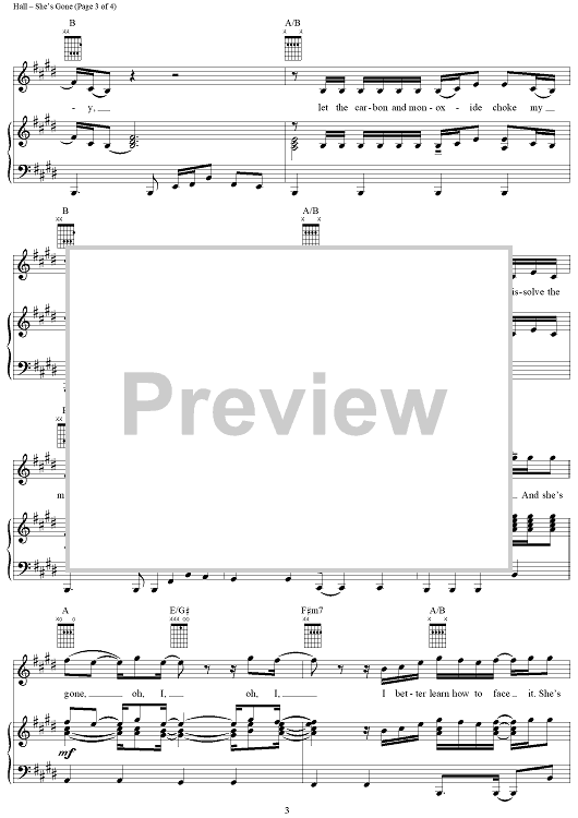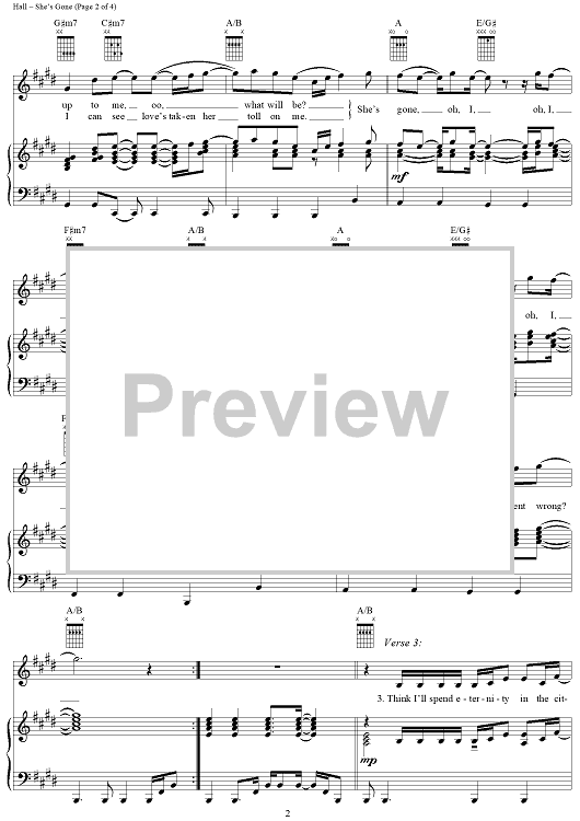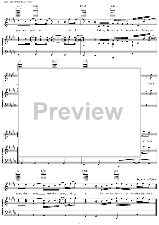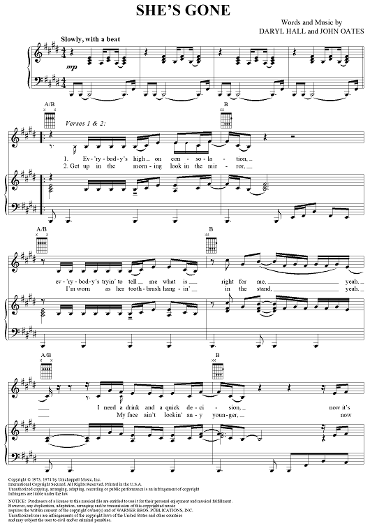 Digital Sheet Music for She's Gone by Daryl Hall, John Oates scored for Piano/Vocal/Chords; id:355943