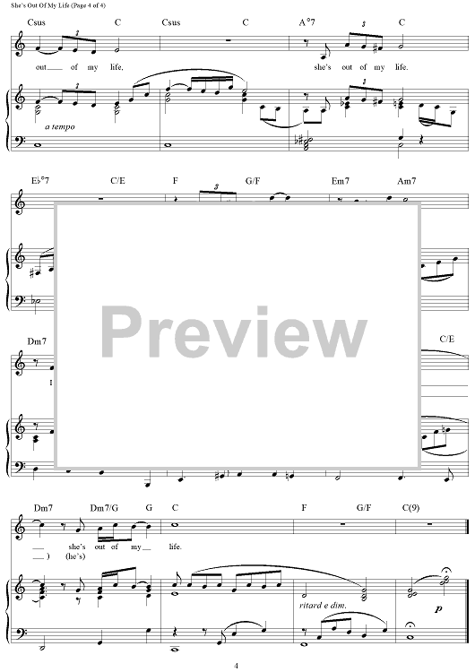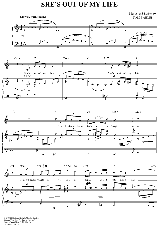 Digital Sheet Music for She's Out Of My Life by Michael Jackson, Tom Bahler scored for Piano/Vocal/Chords; id:119700