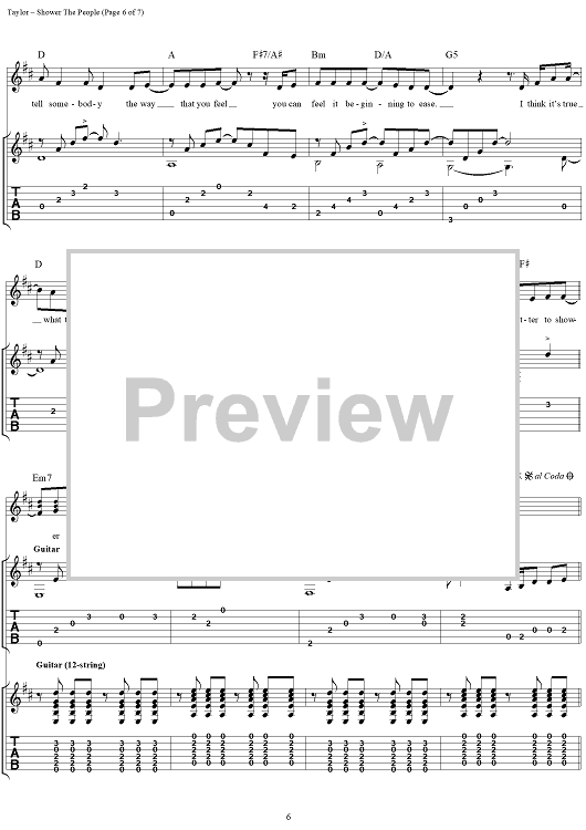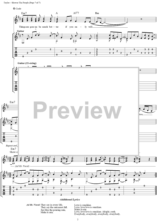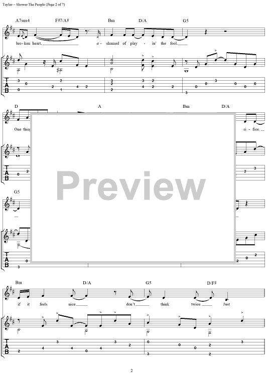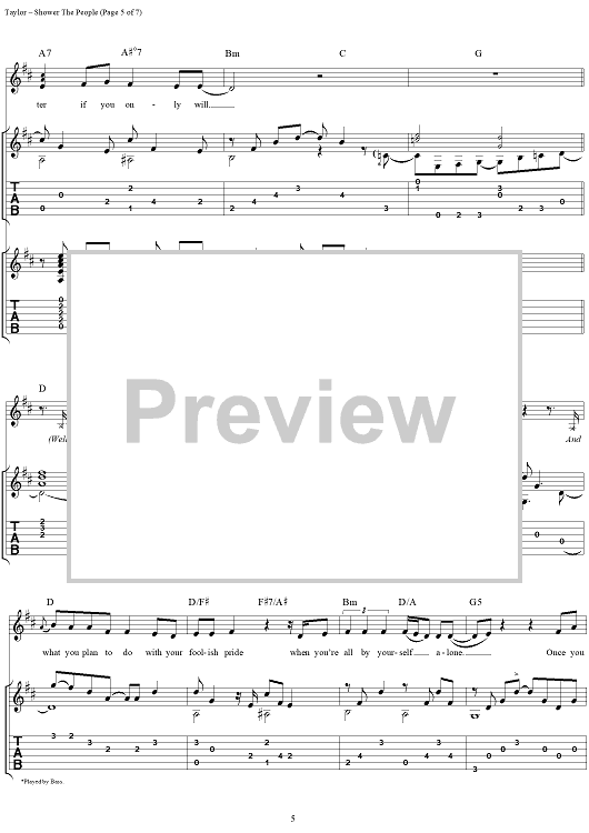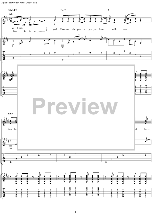 Digital Sheet Music for Shower the People by James Taylor scored for Guitar Tab/Vocal; id:109813