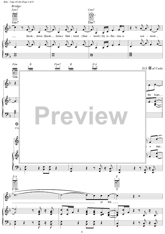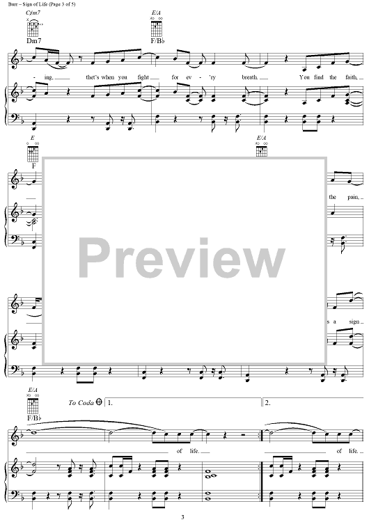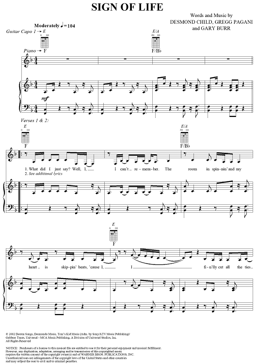 Digital Sheet Music for Sign of Life by LeAnn Rimes, Gary Burr, Desmond Child, Gregg Pagani scored for Piano/Vocal/Chords; id:294105