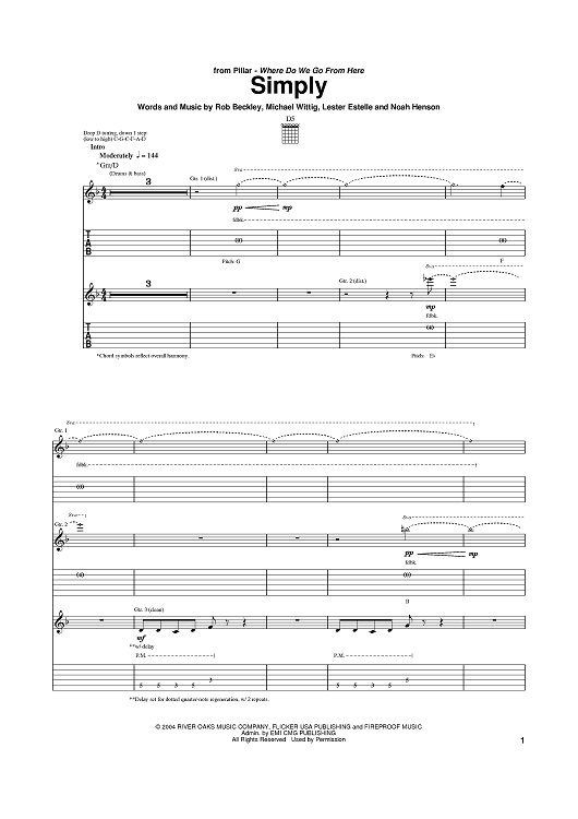 Digital Sheet Music for Simply by Rob Beckley, Lester Estelle, Noah Henson, Pillar, Kalel scored for Guitar Tab; id:380281