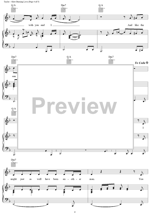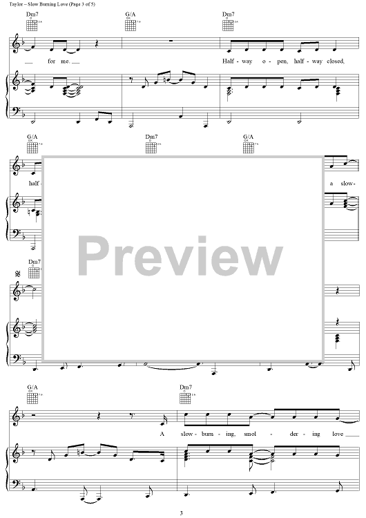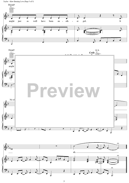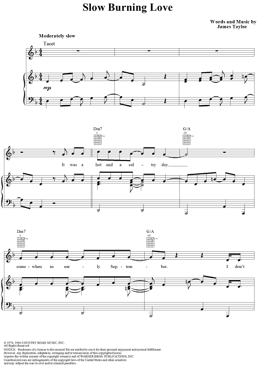 Digital Sheet Music for Slow Burning Love by James Taylor scored for Piano/Vocal/Chords; id:111373