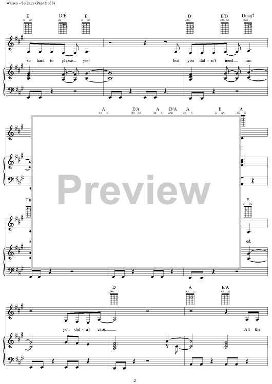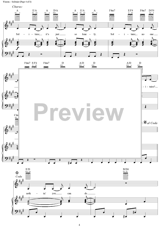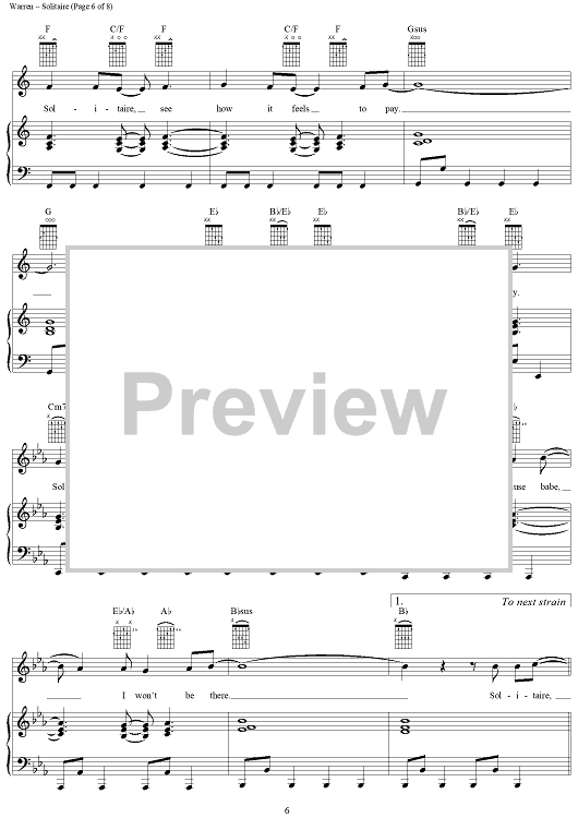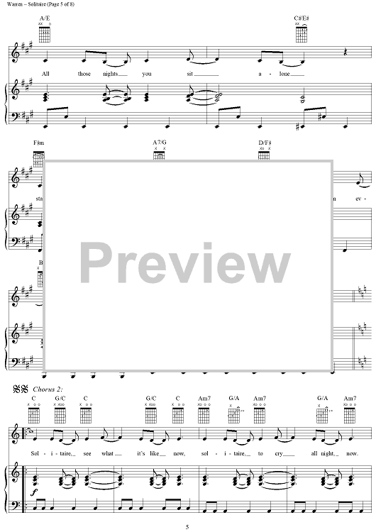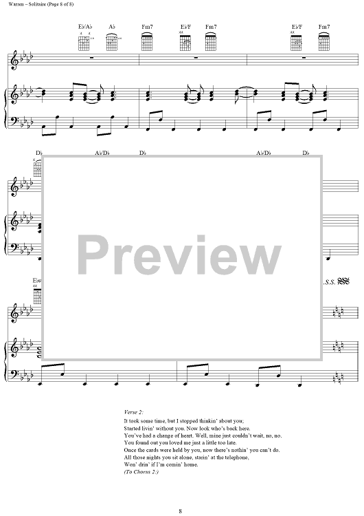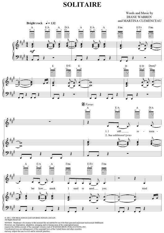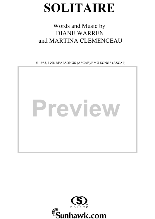 Digital Sheet Music for Solitaire by Diane Warren, Laura Branigan scored for Piano/Vocal/Chords; id:119208