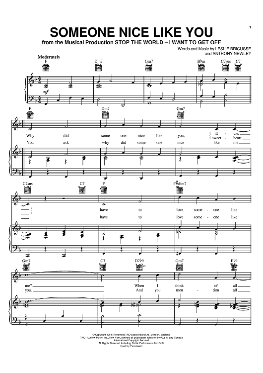 Digital Sheet Music for Someone Nice Like You by Leslie Bricusse, Anthony Newley scored for Piano/Vocal/Chords; id:396078