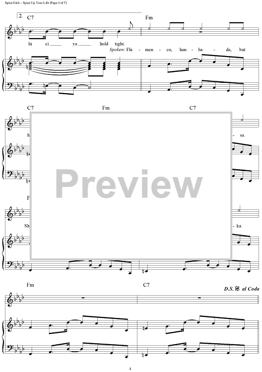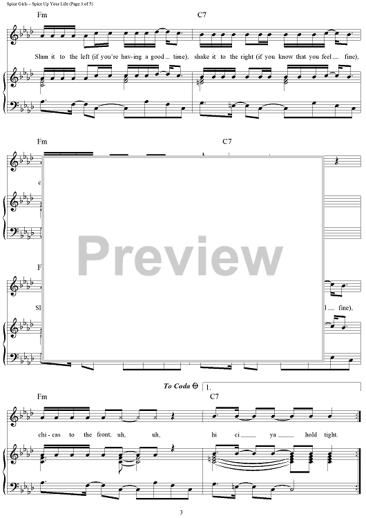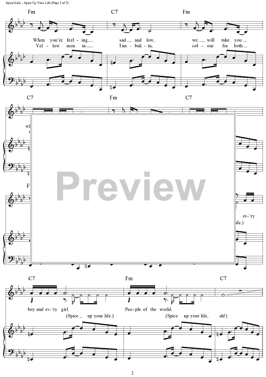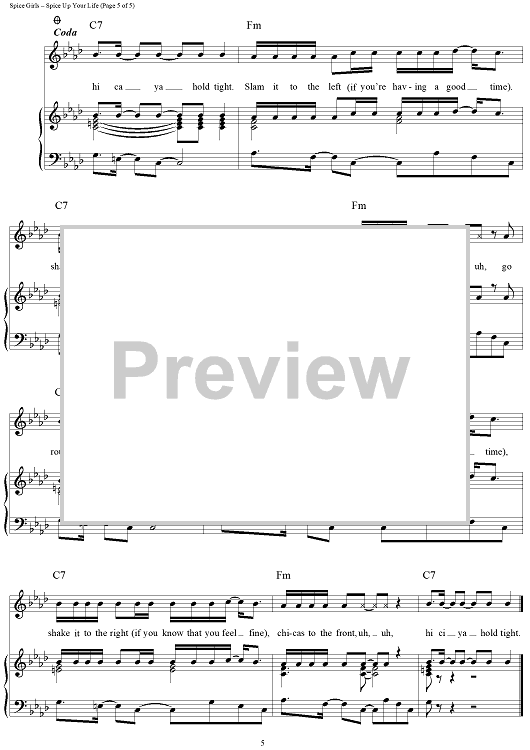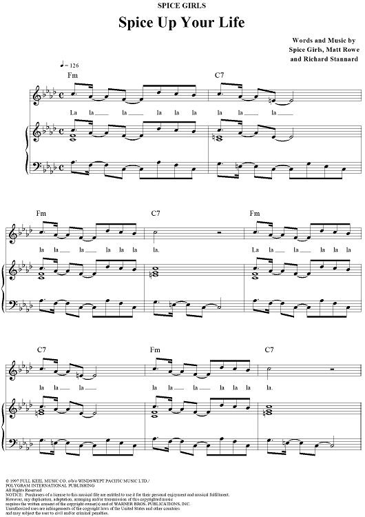 Digital Sheet Music for Spice Up Your Life by Matthew Rowebottom, Richard Stannard, Spice Girls scored for Piano/Vocal/Chords; id:110878