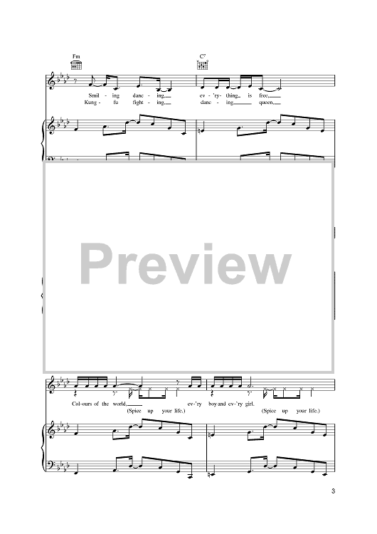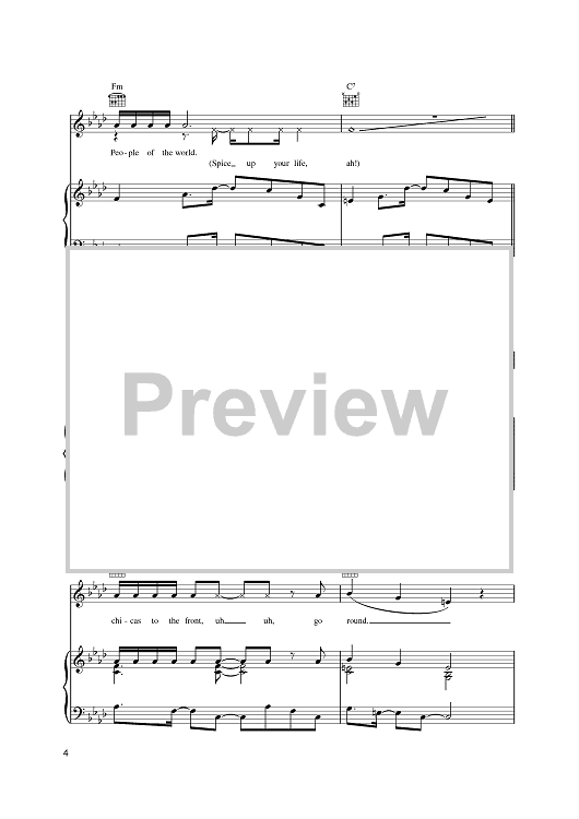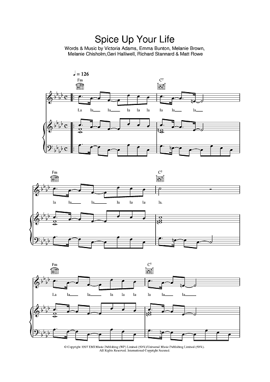 Digital Sheet Music for Spice Up Your Life by Emma Bunton, Melanie Brown, Mel C, Geri Halliwell, Matt Rowe, Richard Stannard, Victoria Adams, Spice Girls scored for Piano/Vocal/Chords; id:391161