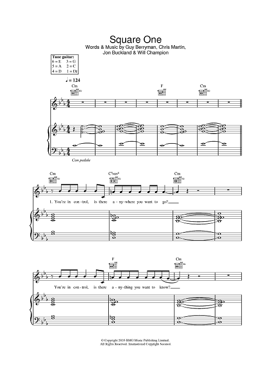 Digital Sheet Music for Square One by Chris Martin, Coldplay, Jonny Buckland, Guy Berryman scored for Piano/Vocal/Chords; id:402923