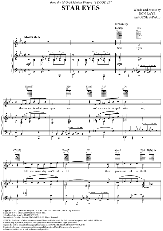 Digital Sheet Music for Star Eyes by Don Raye, Gene De Paul scored for Piano/Vocal/Chords; id:320961