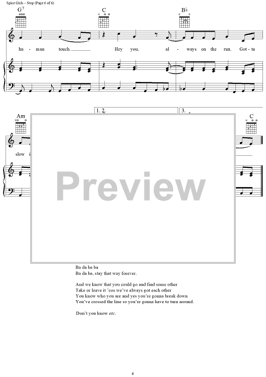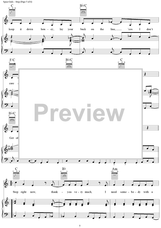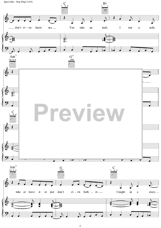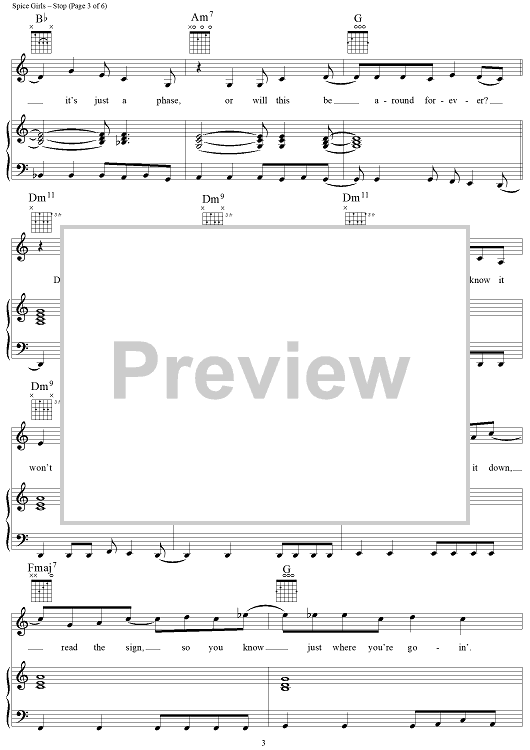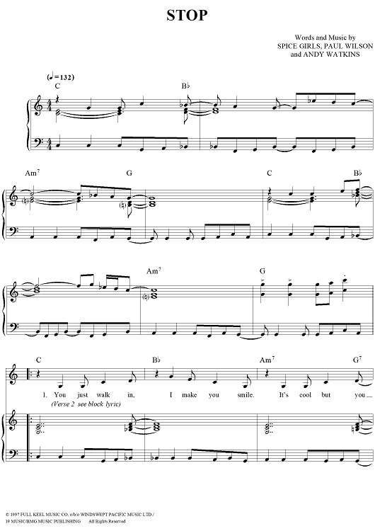 Digital Sheet Music for Stop by Paul Wilson, Andy Watkins, Spice Girls scored for Piano/Vocal/Chords; id:112065