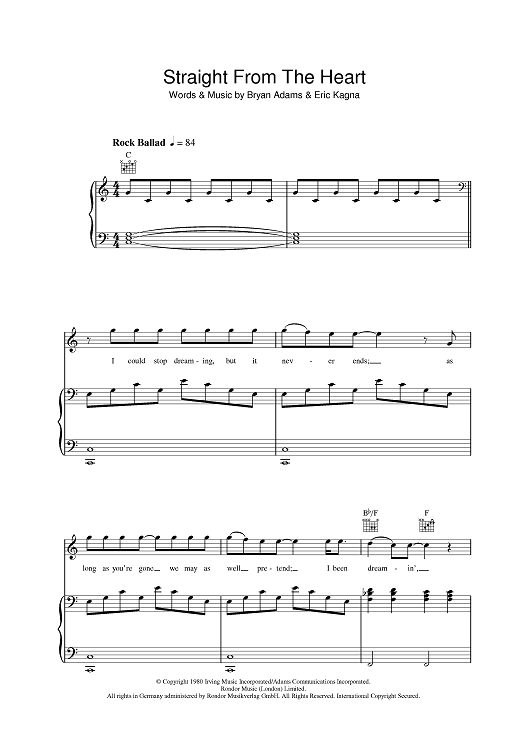 Digital Sheet Music for Straight From The Heart by Bryan Adams, Eric Kagna scored for Piano/Vocal/Chords; id:394303