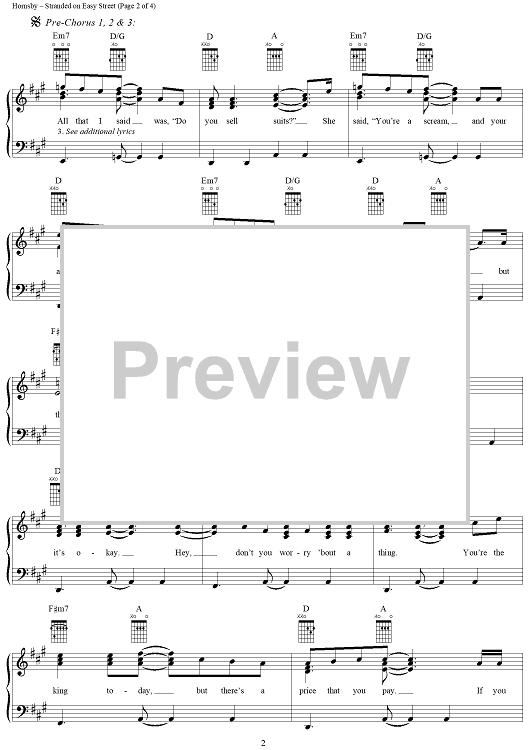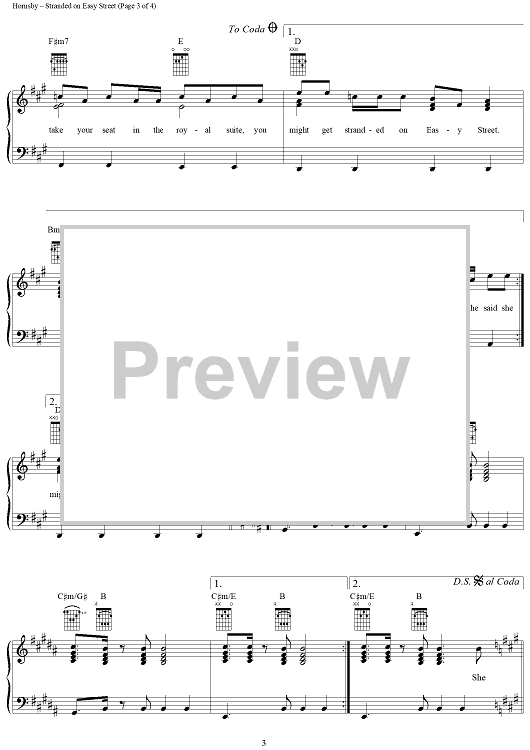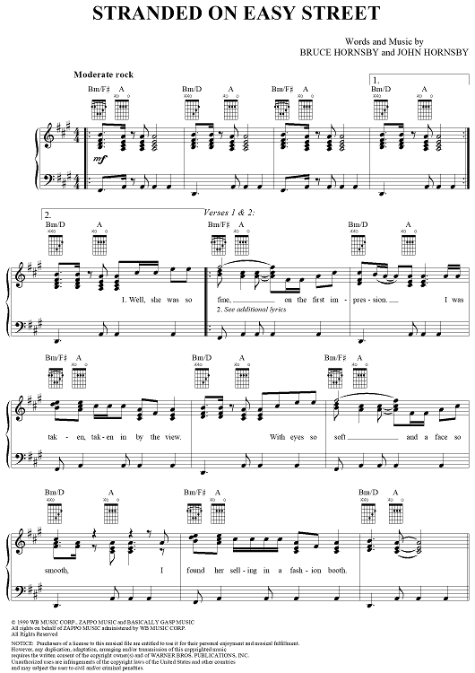 "Stranded on Easy Street" Sheet Music by Bruce Hornsby