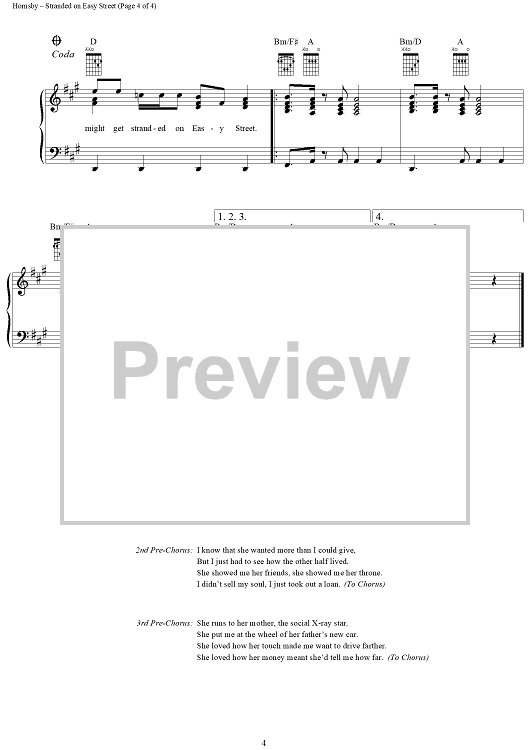 Digital Sheet Music for Stranded on Easy Street by Bruce Hornsby, John Hornsby scored for Piano/Vocal/Chords; id:266299