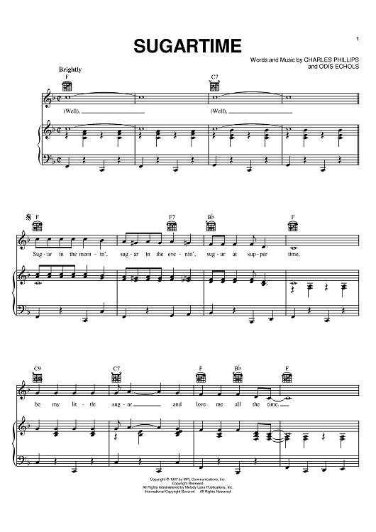 Digital Sheet Music for Sugartime by Odis Echols, The McGuire Sisters, Charles Phillips scored for Piano/Vocal/Chords; id:367940