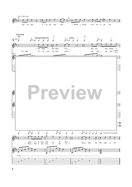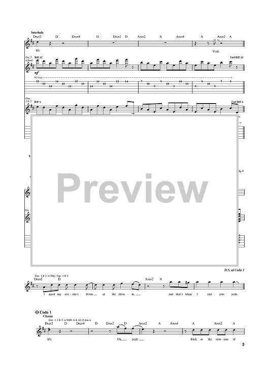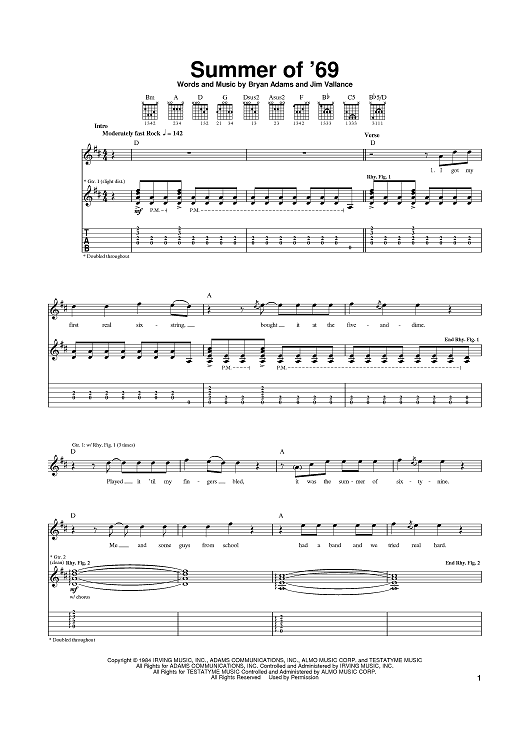 Digital Sheet Music for Summer Of '69 by Bryan Adams, Jim Vallance scored for Guitar Tab; id:367905