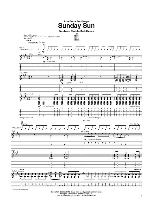 Digital Sheet Music for Sunday Sun by Beck scored for Guitar Tab; id:372698