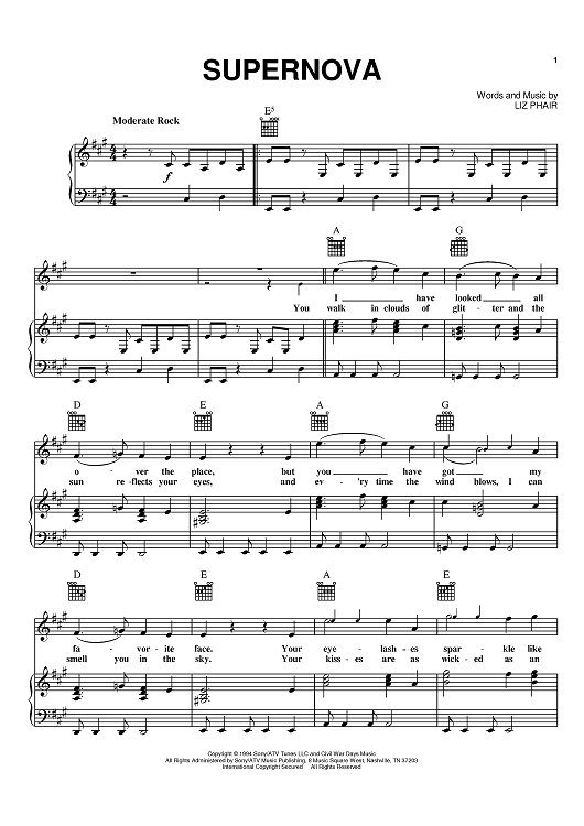 Digital Sheet Music for Supernova by Liz Phair scored for Piano/Vocal/Chords; id:368513