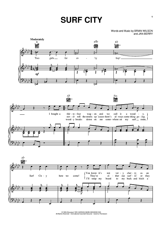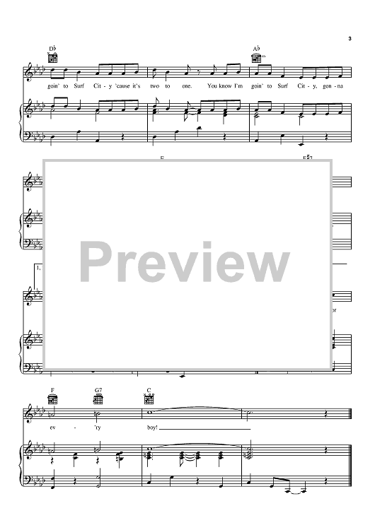Digital Sheet Music for Surf City by Brian Wilson, Jan and Dean, Jan Berry scored for Piano/Vocal/Chords; id:391714