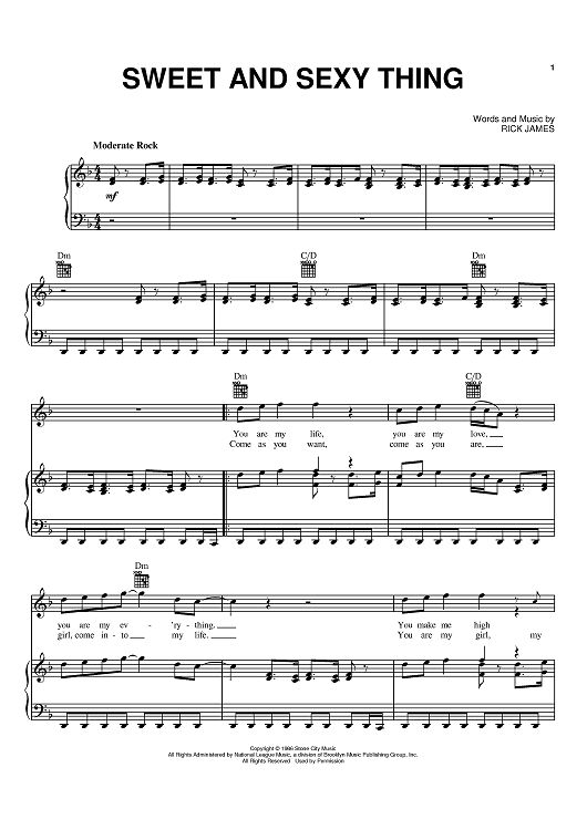 Digital Sheet Music for Sweet And Sexy Thing by Rick James scored for Piano/Vocal/Chords; id:370104