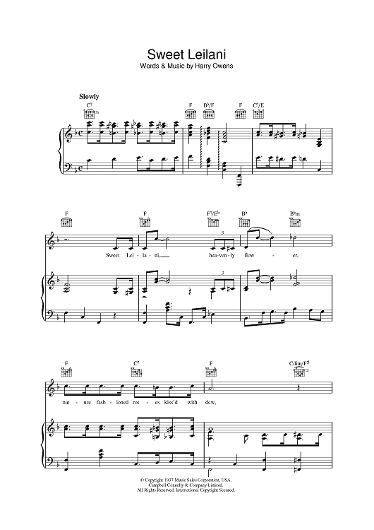 Digital Sheet Music for Sweet Leilani by Harry Owens scored for Piano/Vocal/Chords; id:394995