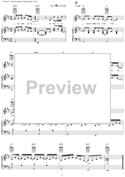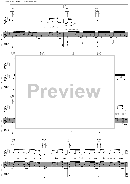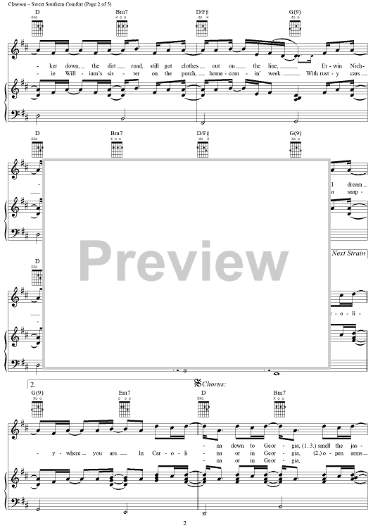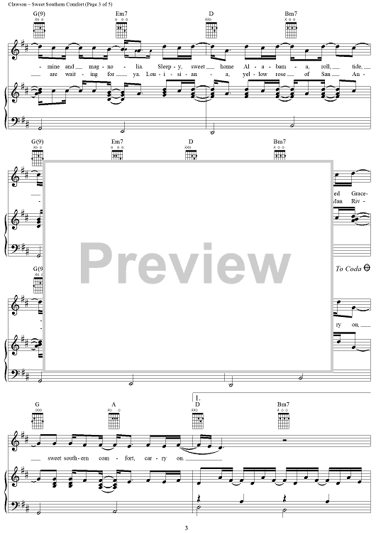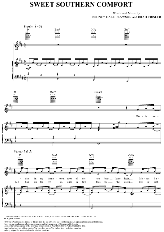 Digital Sheet Music for Sweet Southern Comfort by Brad Crisler, Buddy Jewell, Rodney Clawson scored for Piano/Vocal/Chords; id:304571