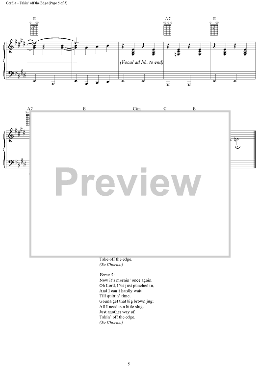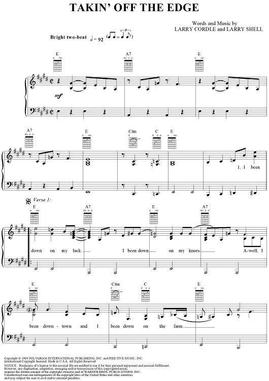 Digital Sheet Music for Takin' Off the Edge by John Michael Montgomery, Larry Cordle, Larry Shell scored for Piano/Vocal/Chords; id:143675