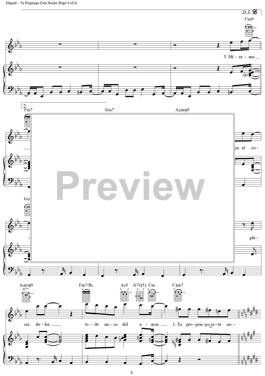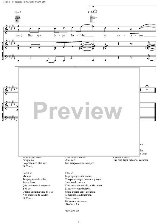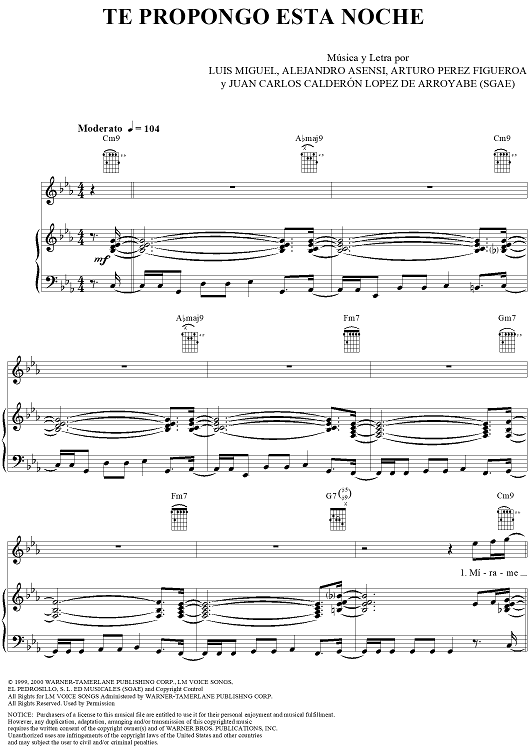Digital Sheet Music for Te Propongo Esta Noche by Luis Miguel, Alejandro Asensi, Arturo Perez Figueroa, Juan Carlos Calderon scored for Piano/Vocal/Chords; id:234522