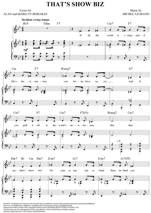 Digital Sheet Music for That's Show Biz by Michel LeGrand, Alan Bergman, Marilyn Bergman scored for Piano/Vocal/Chords; id:250788