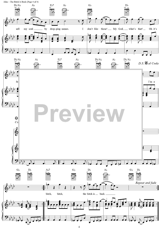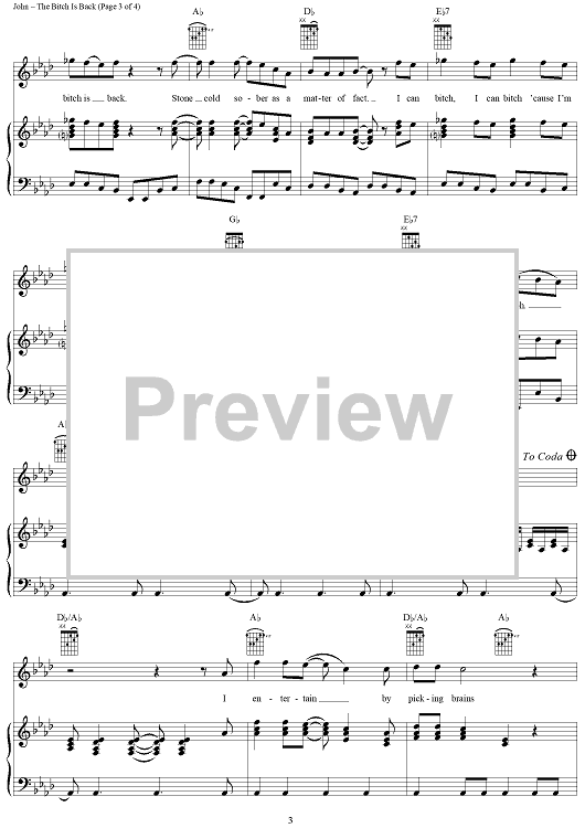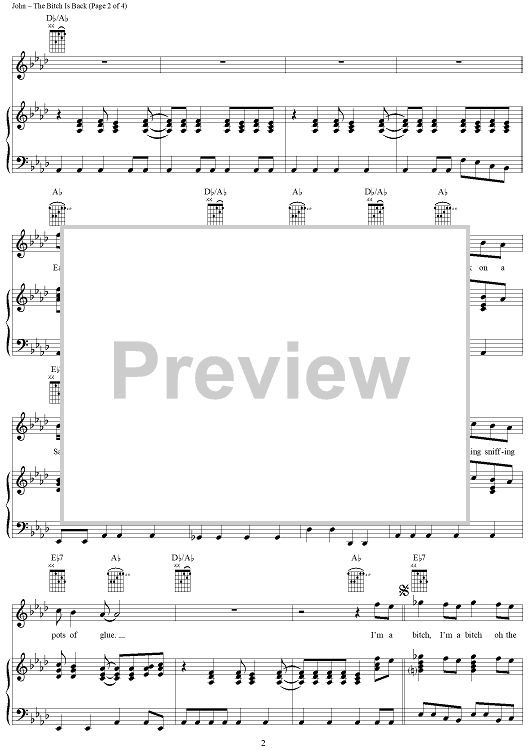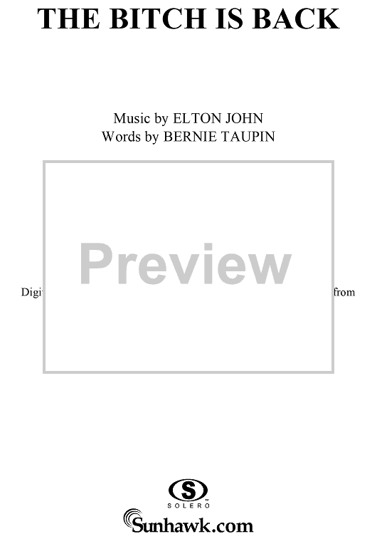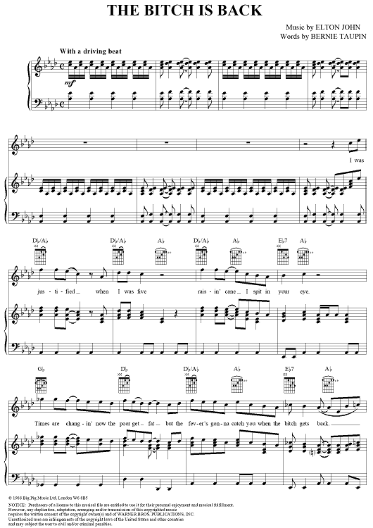 Digital Sheet Music for The Bitch Is Back by Elton John, Bernie Taupin scored for Piano/Vocal/Chords; id:297440