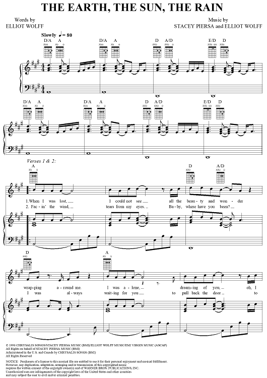 Digital Sheet Music for The Earth, the Sun, the Rain by Color Me Badd, Stacey Piersa, Elliot Wolff scored for Piano/Vocal/Chords; id:254658