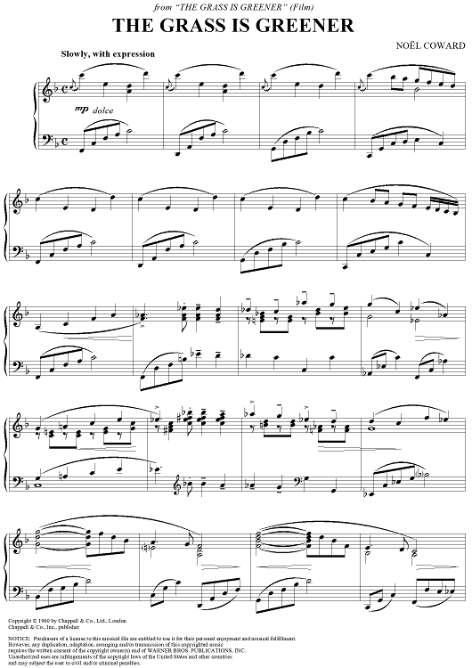 Digital Sheet Music for The Grass Is Greener by Noel Coward scored for Piano Solo; id:357019
