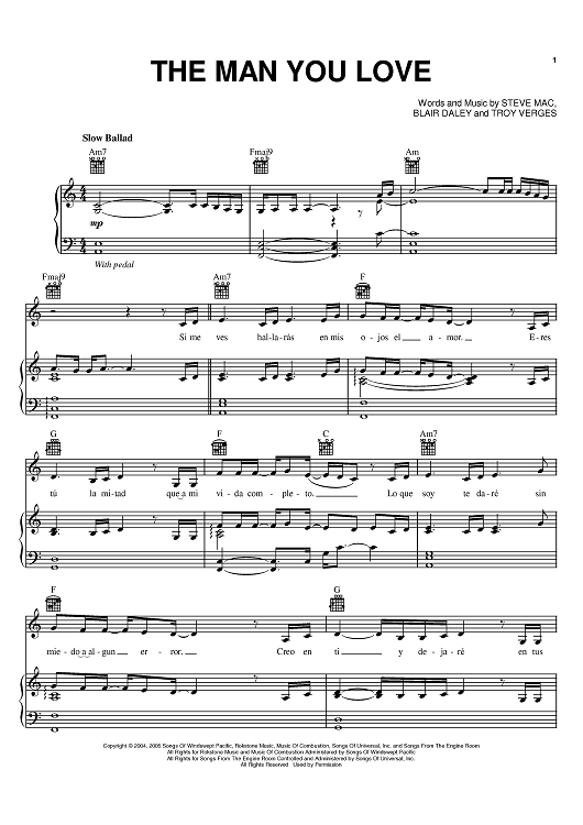 Digital Sheet Music for The Man You Love by Troy Verges, Steve Mac, Il Divo, Blair Daley scored for Piano/Vocal/Chords; id:387130