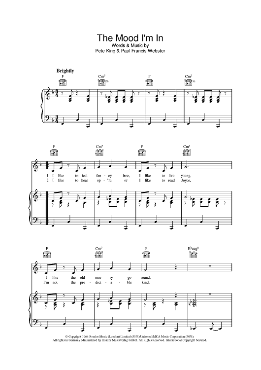 Digital Sheet Music for The Mood I'm In by Paul Francis Webster, Pete King scored for Piano/Vocal/Chords; id:394971