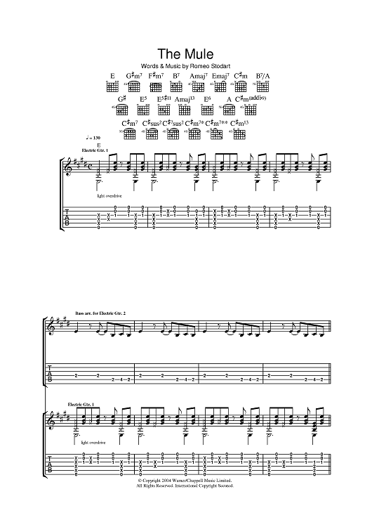 Digital Sheet Music for The Mule by The Magic Numbers, Romeo Stodart scored for Guitar Tab; id:395879