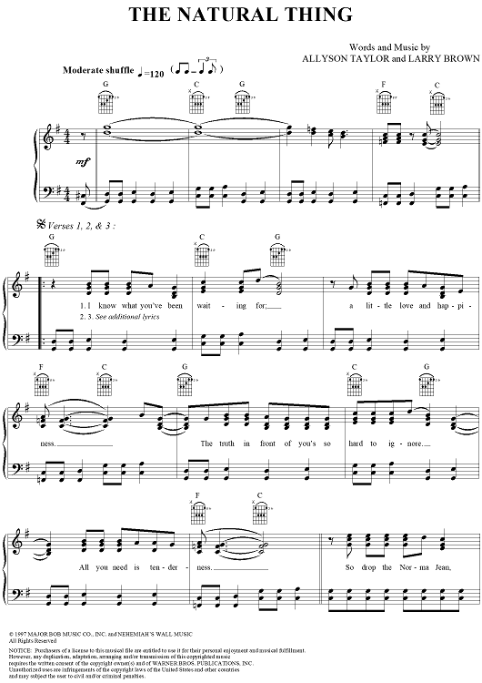 Digital Sheet Music for The Natural Thing by Bryan White, Larry Brown, Allyson Taylor scored for Piano/Vocal/Chords; id:259392