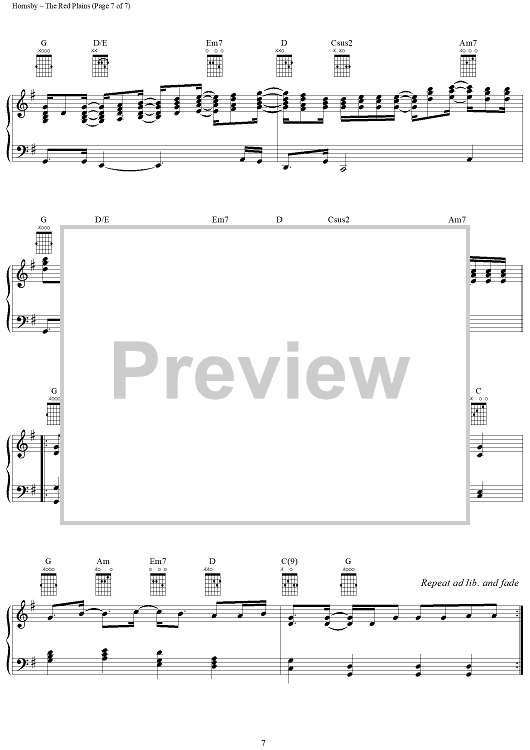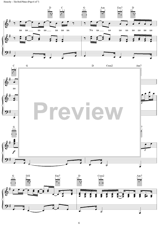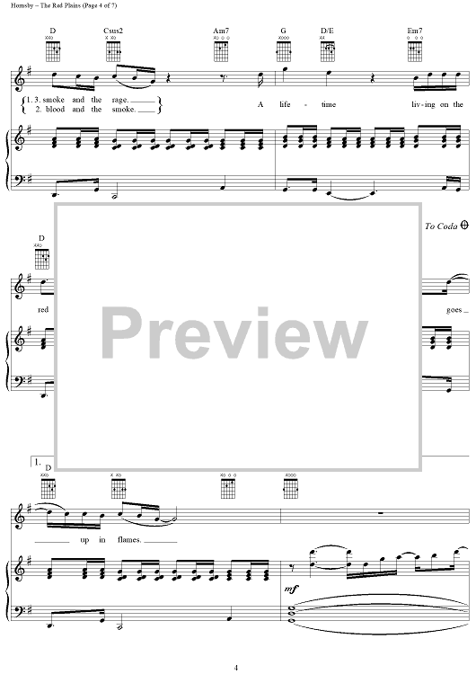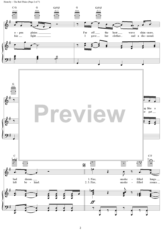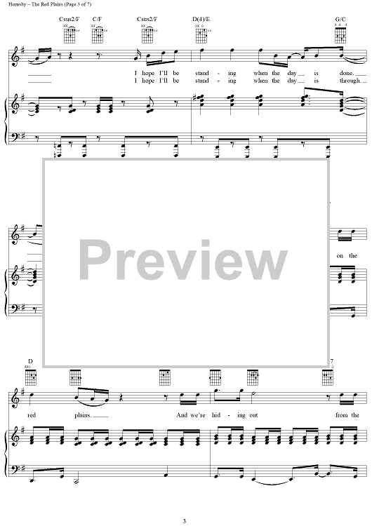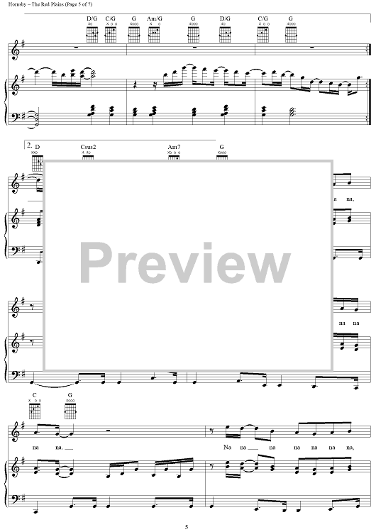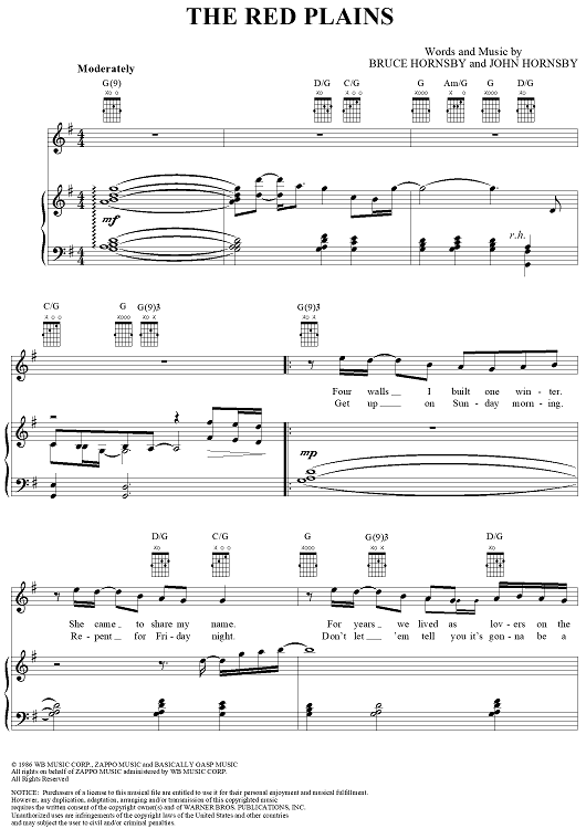 Digital Sheet Music for The Red Plains by Bruce Hornsby, John Hornsby scored for Piano/Vocal/Chords; id:240946