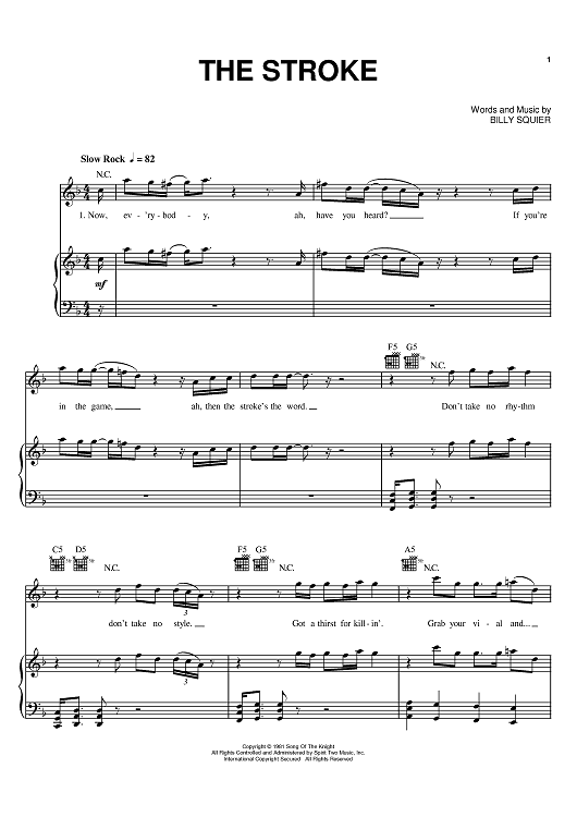 Digital Sheet Music for The Stroke by Billy Squier scored for Piano/Vocal/Chords; id:383826