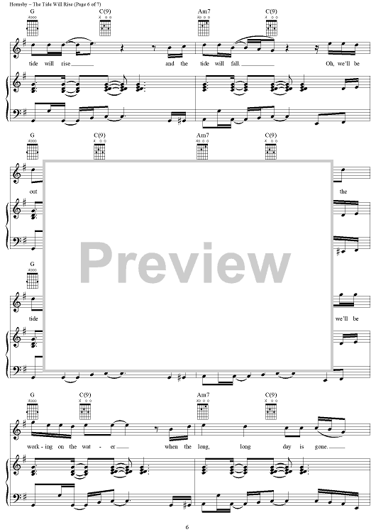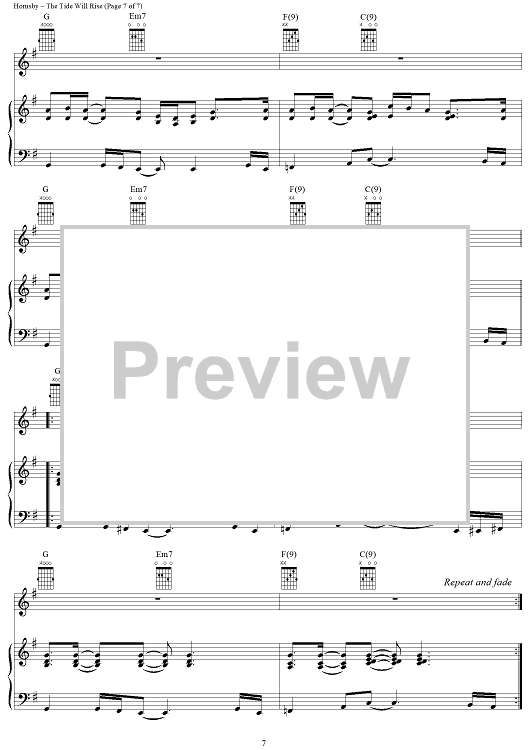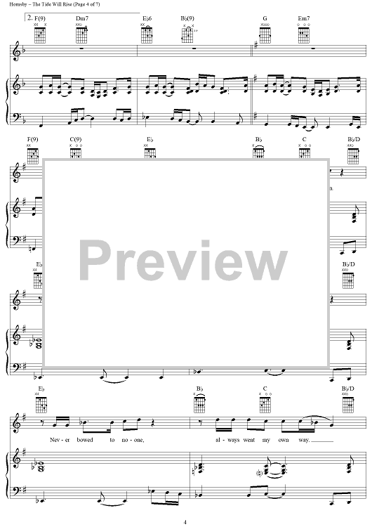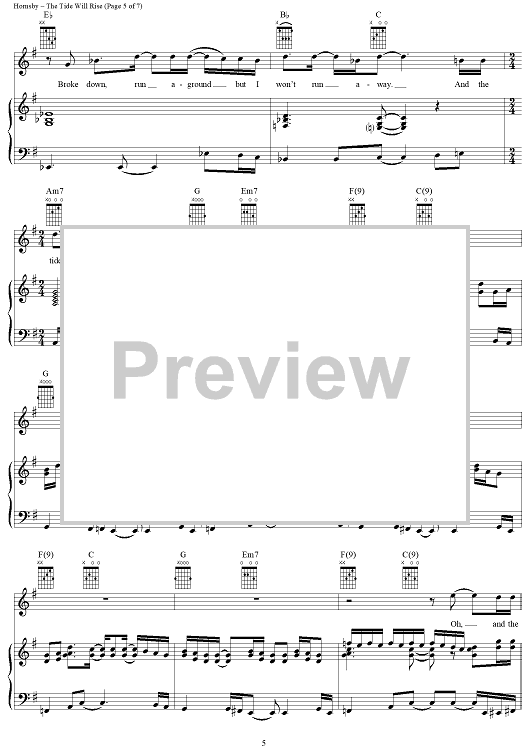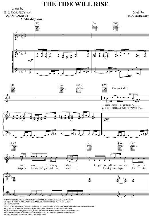 Digital Sheet Music for The Tide Will Rise by Bruce Hornsby scored for Piano/Vocal/Chords; id:266312