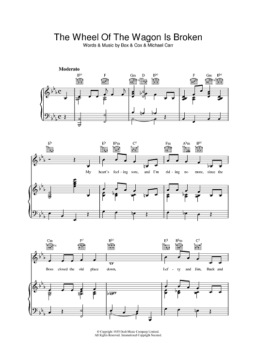 Digital Sheet Music for The Wheel Of The Wagon Is Broken by Michael Carr, Elton Box, Desmond Cox scored for Piano/Vocal/Chords; id:394407
