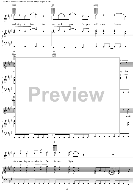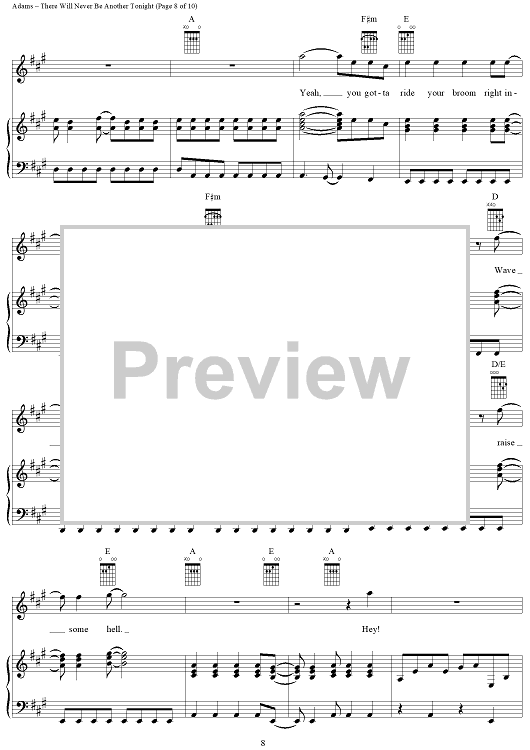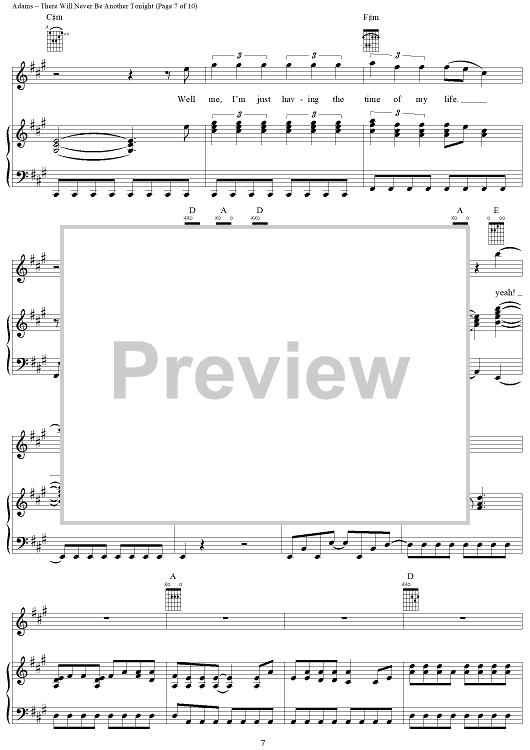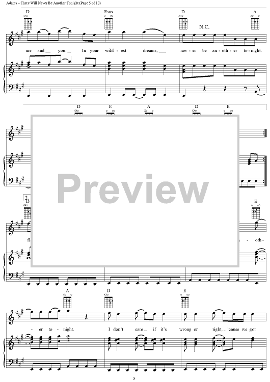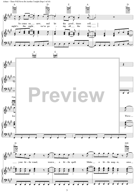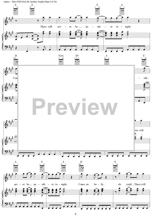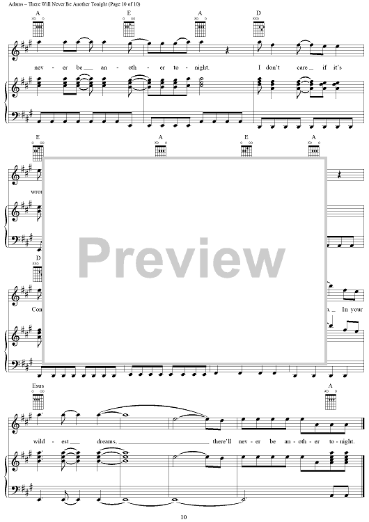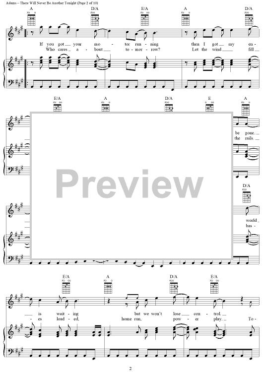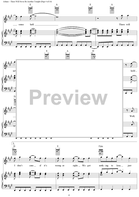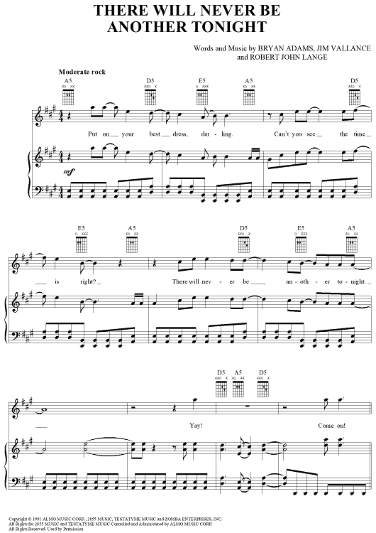 Digital Sheet Music for There Will Never Be Another Tonight by Bryan Adams, Robert Lange, Jim Vallance scored for Piano/Vocal/Chords; id:367735