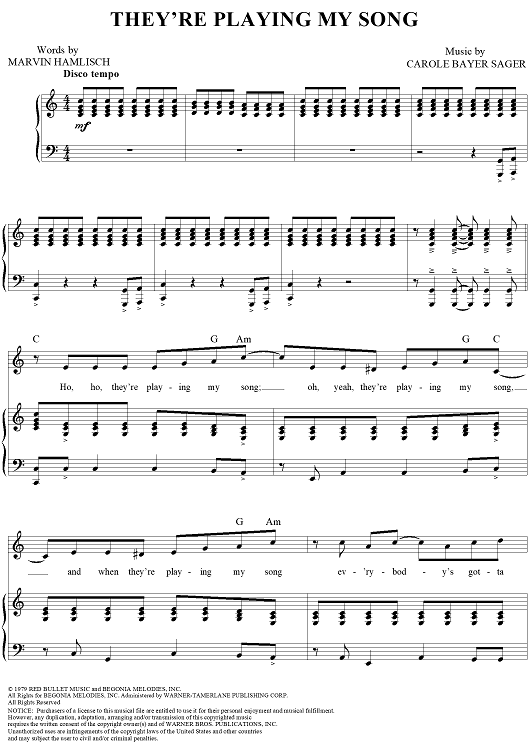 Digital Sheet Music for They're Playing My Song by Marvin Hamlisch, Carole Bayer Sager scored for Piano/Vocal/Chords; id:139888