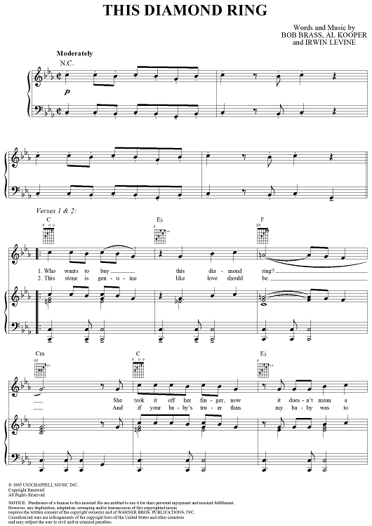 Digital Sheet Music for This Diamond Ring by Irwin Levine, Bob Brass, Al Kooper, Gary Lewis, The Playboys scored for Piano/Vocal/Chords; id:287083