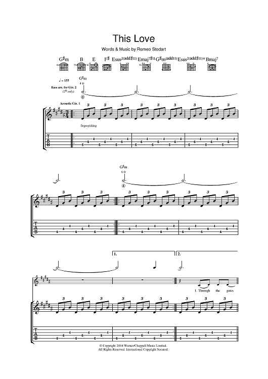 Digital Sheet Music for This Love by The Magic Numbers, Romeo Stodart scored for Guitar Tab; id:395882