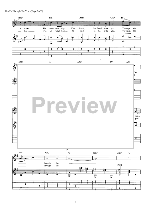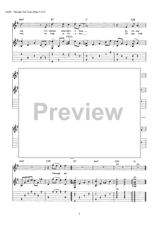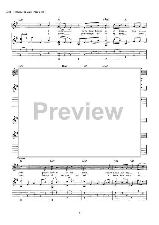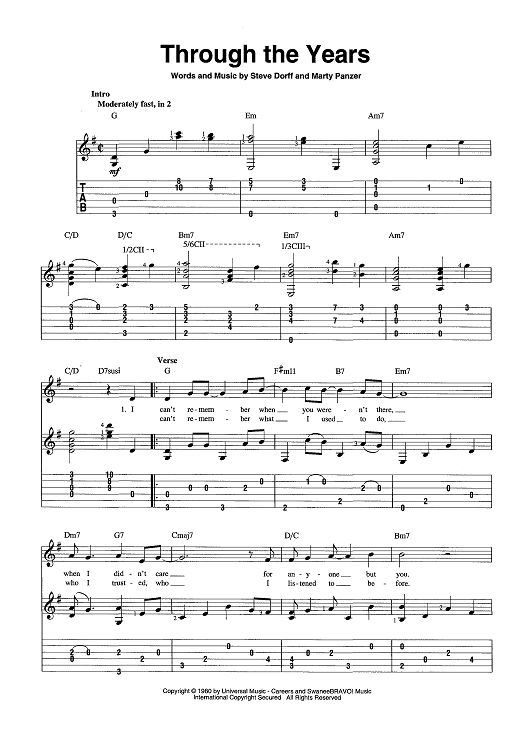 Digital Sheet Music for Through the Years by Steve Dorff, Marty Panzer scored for Guitar Tab/Vocal/Chords; id:443647