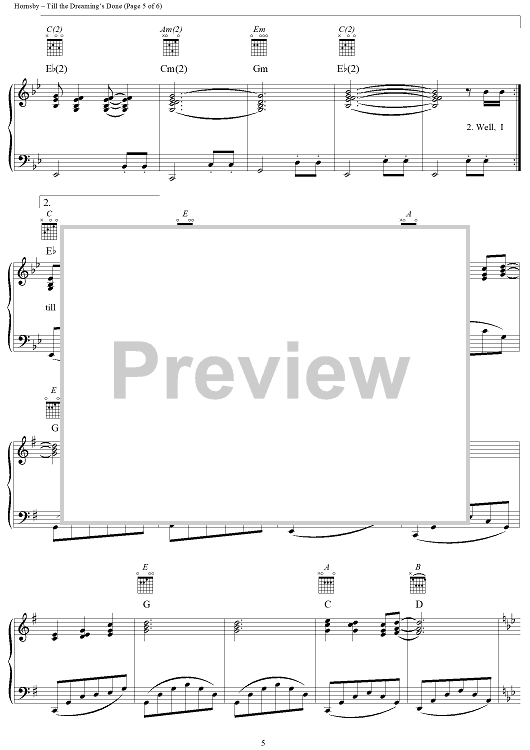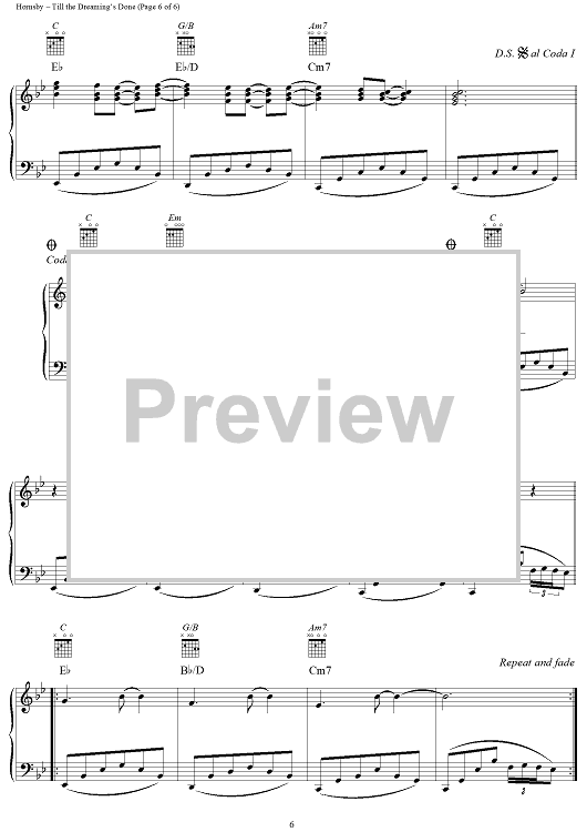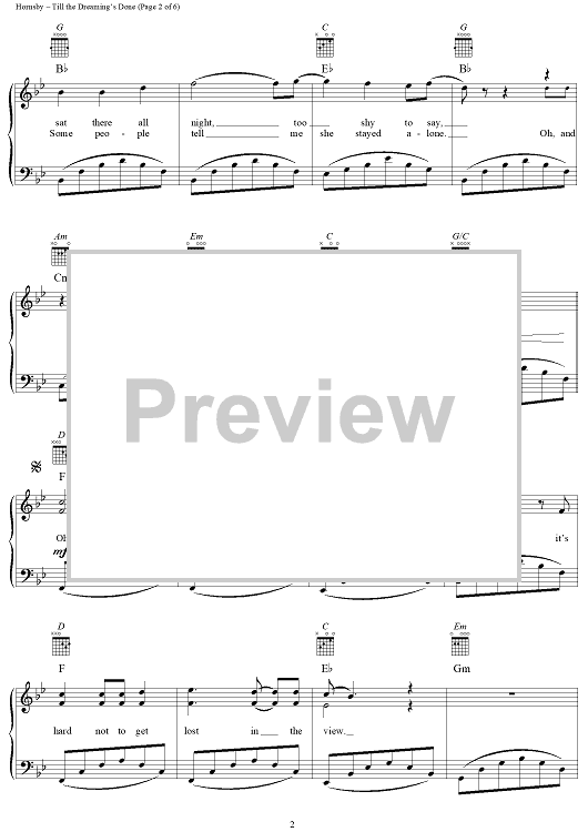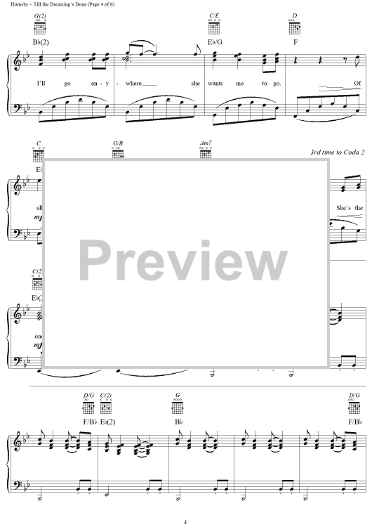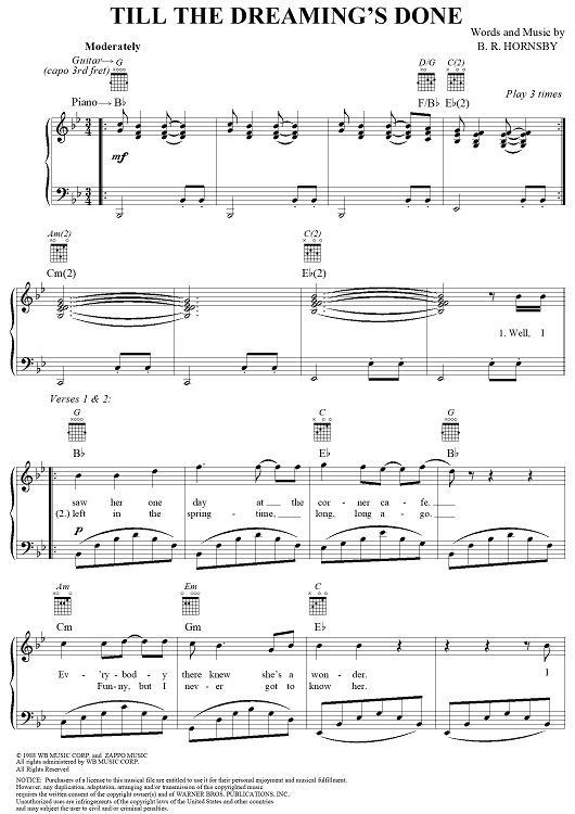 Digital Sheet Music for Till the Dreaming's Done by Bruce Hornsby scored for Piano/Vocal/Chords; id:266313