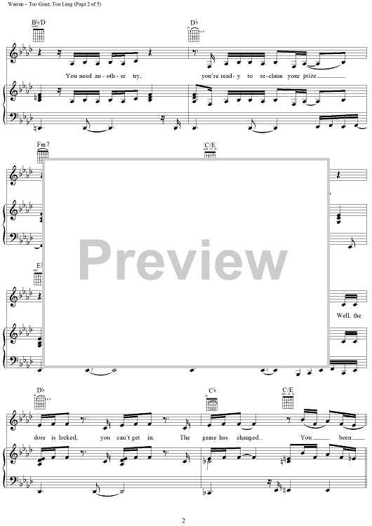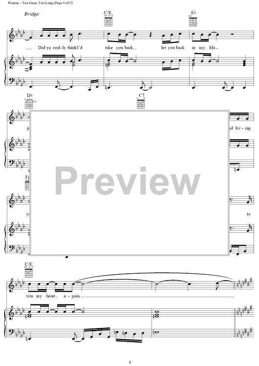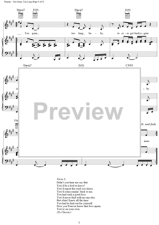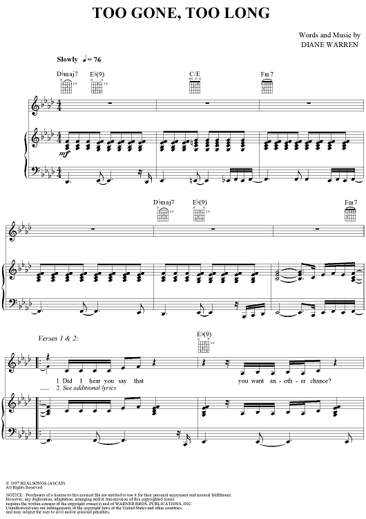 Digital Sheet Music for Too Gone, Too Long by Diane Warren, En Vogue scored for Piano/Vocal/Chords; id:120769